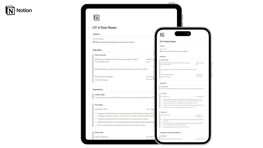 Your resume is more than just a document—it's your first impression. This ATS-optimized Notion CV is designed to improve your job application success by ensuring your information is easy to read and formatted for applicant tracking systems. With a clean and structured design, it helps highlight your skills and experience in the best possible way.
