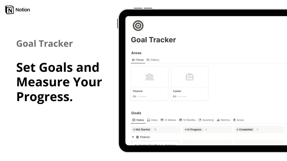 A structured approach to goal setting can help you achieve more. This Notion Goal Tracker helps you define clear objectives, break them into actionable steps, and track progress effortlessly. Thus, you can stay motivated and aligned with your vision every day.
