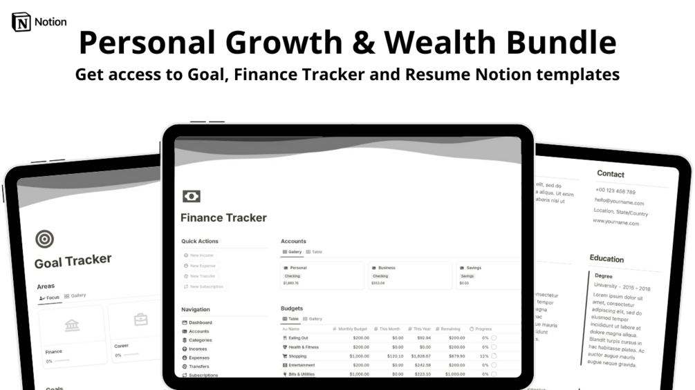 Take control of your finances, career, and personal goals with this all-in-one Notion system. Whether you're working toward financial freedom, career advancement, or personal growth, this bundle helps you stay organized, focused, and on track.